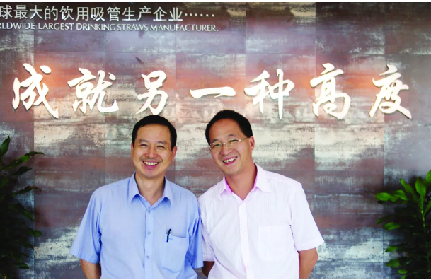 第二天早上,他就背著電腦從他租的房子里搬到我工廠來。當時我的工廠還很小,七八十人,但就因為他的引進,完全改變了雙童!那一年雙童從內(nèi)貿(mào)轉(zhuǎn)到外貿(mào),利潤率大幅提高!因為他的英語、數(shù)字化應用這些東西都很熟練,我們兩個人搭檔強強聯(lián)合,“雙童”在99年、00年、01年這三年,每年都能翻一番!因為吸管結(jié)緣,惺惺相惜