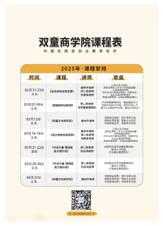 為了能夠助力更多中小企業(yè)也能運用這套機制實現(xiàn)快速增長,雙童商學院早在2022年,雙童商學院就針對該機制打磨成《自主制創(chuàng)業(yè)裂變營》課程,并不斷地升級迭代,該課程已經(jīng)是一套非常成熟的、可復制、可實踐的課程,目前已賦能了2600+學員企業(yè)成長!好評反饋不斷!