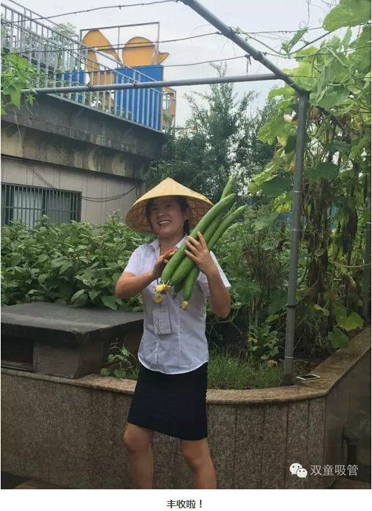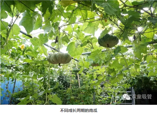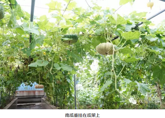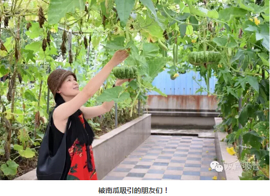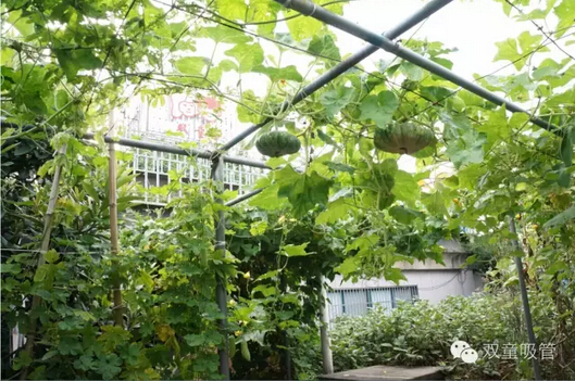 這樣的場景總會吸引來“雙童”參觀的朋友們駐足觀賞,拍照留念,贊嘆屋頂菜園的瓜果!