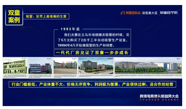 此后七年,雙童創(chuàng)業(yè)平臺成功孵化出了16家創(chuàng)業(yè)體和26個經(jīng)營體!形成了以吸管制造業(yè)為基礎(chǔ),以國際貿(mào)易和創(chuàng)業(yè)教育兩大板塊為融合的新型產(chǎn)業(yè)模式,完成了從“一根吸管”到“創(chuàng)業(yè)平臺”的轉(zhuǎn)變!
