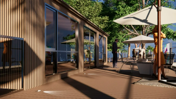 結(jié)合周圍的樹林環(huán)境,雙童森林長廊的主體采用了木質(zhì)材料;而考慮到現(xiàn)在年輕人的喜好,又在樹屋里設計了咖啡屋和燒烤區(qū)。