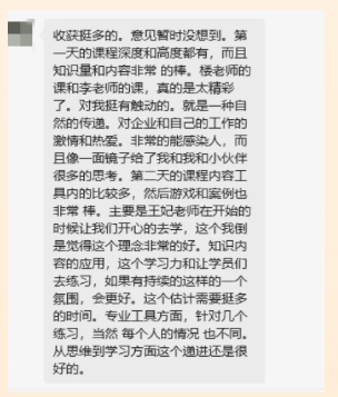 兩天的課程學(xué)習(xí)之后,我們也收到了不少本期學(xué)員的好評(píng)反饋:在學(xué)習(xí)完這門(mén)課程后都給出了好評(píng)雙童商學(xué)院選擇走出義烏在深圳開(kāi)設(shè)《中堅(jiān)力量管理實(shí)戰(zhàn)營(yíng)》課程,絕非偶然的市場(chǎng)選擇,而是通過(guò)深思熟慮與企業(yè)發(fā)展剛需的戰(zhàn)略布局。