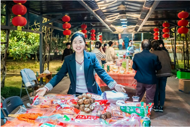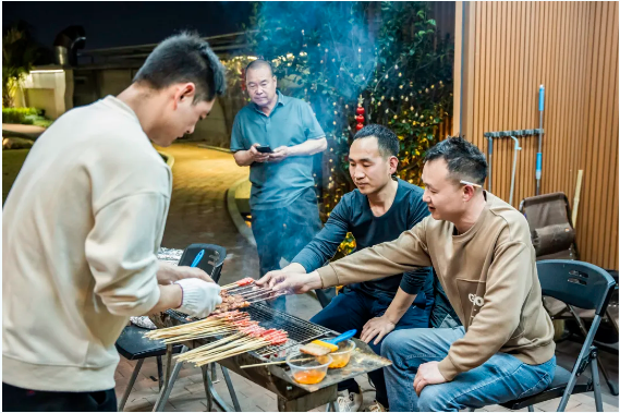 接下來,就輪到我們的燒烤師傅登場了!隨著肉串在火焰上漸漸變得金黃誘人,空氣中彌漫著令人垂涎的烤肉香。熊熊燃燒的火焰與大家高漲的熱情讓現(xiàn)場氣氛熱烈非凡,整個空中生態(tài)園都沉浸在這份歡樂和溫暖之中。