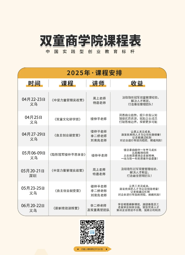 這個問題的答案可以在雙童文化研學班游學現(xiàn)場感受并學習到。歡迎大家走進4月25日【雙童文化研學班】,與來自全國的創(chuàng)業(yè)者們共同探討、學習如何有效地打造和強化企業(yè)文化!