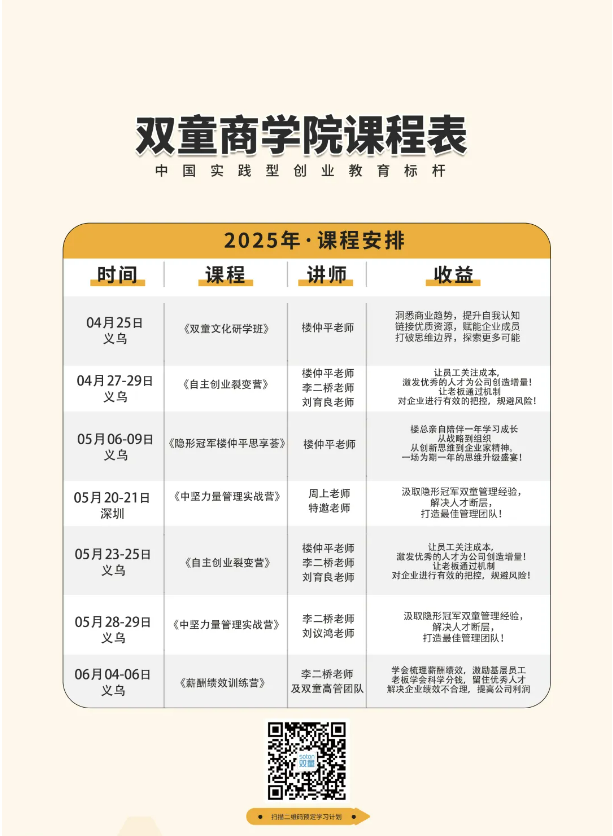當(dāng)然,除了現(xiàn)場課堂,還有創(chuàng)始人樓仲平3個小時的主題課程分享和面對面互動答疑環(huán)節(jié),讓大家在研學(xué)活動中避免走馬觀花,真正找到“雙童”經(jīng)營過程中的科學(xué)管理邏輯,實現(xiàn)創(chuàng)業(yè)思維的升階!