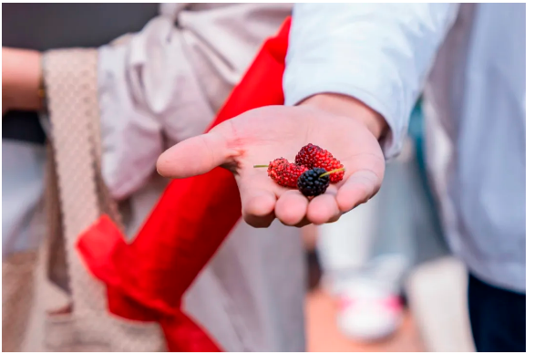 桑葚色澤紅中透紫,皮薄如蟬翼