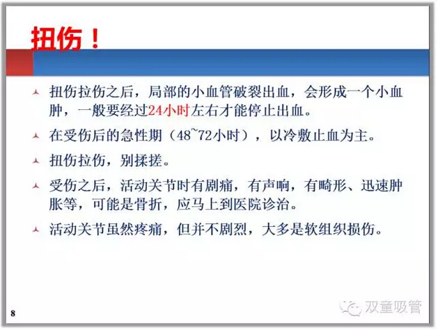 在運動過程中,我們經(jīng)常會出現(xiàn)扭傷,外傷出血,骨折等狀況。遇到這些問題時,我們又該怎么辦呢?妞就把PPT干貨放上來和大家共享吧!
