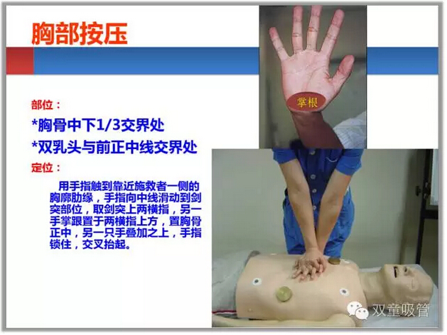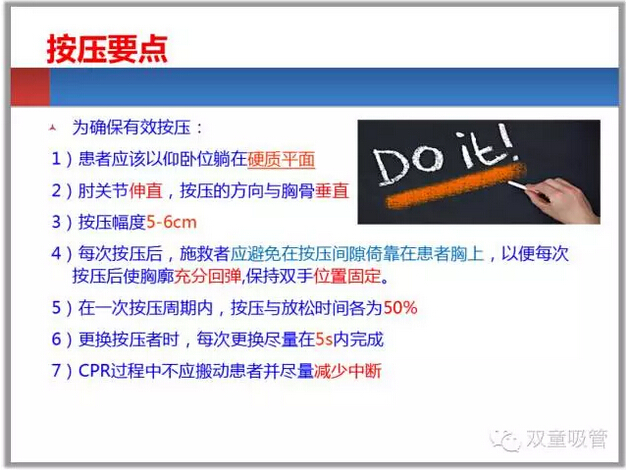 最后朱主任和大家講解了心肺復蘇,心肺復蘇是急救當中很重要的一個急救措施,如果操作不當很可能就會失去生命。遇到有人心臟驟停時,我們應該立即進行呼救,并進行心肺復蘇,怎樣才是正確的心肺復蘇方式,快來看看PPT中的幾大要點吧!