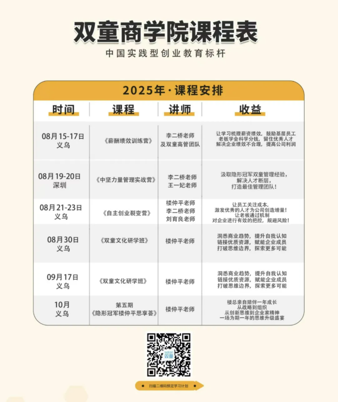 如果你也對(duì)“雙童”充滿(mǎn)好奇,也想賦能團(tuán)隊(duì)共同成長(zhǎng),歡迎走進(jìn)8月30日【雙童文化研學(xué)班】,與上百位優(yōu)秀的創(chuàng)業(yè)者一起學(xué)習(xí)!少量名額,歡迎咨詢(xún)鎖定!