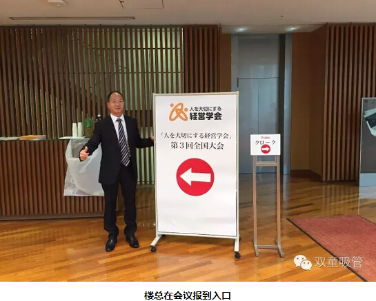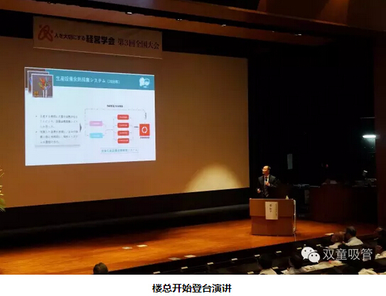本次樓總的演講主題是《“雙童”人本經(jīng)營實踐--不忘初心、敬天愛人》,樓總采用中文演講+日文PPT播放,再由會議主辦方進行日文同聲翻譯。因為語言溝通的原因樓總無法在演講中做到幽默和風趣,但分享過程中對“雙童”人本經(jīng)營的精彩呈現(xiàn)深深地吸引了與會代表的大量拍照,并在演講過程和結束后獲得了幾分鐘的持續(xù)掌聲。