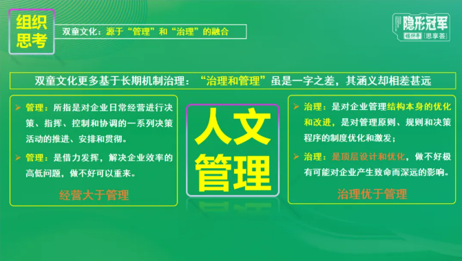 雙童文化源于“管理”和“治理“”的融合,治理是在滿足人性訴求下,對管理的本身進(jìn)行結(jié)構(gòu)優(yōu)化和激勵,通過“順人性”的規(guī)則和機(jī)制,激發(fā)員工對經(jīng)營結(jié)果承擔(dān)責(zé)任。雙童正是通過這些人文管理消除對立、減少博弈,從而實(shí)現(xiàn)一次次的穿越周期。
