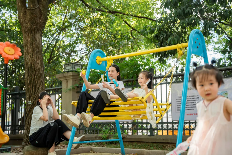 氣球大作戰(zhàn)活動開始前,大家齊聚雙童一號樹下,嬉戲玩耍、笑語不斷。這棵百年古樹枝繁葉茂、亭亭如蓋,旁邊的則是雙童湖,碧波蕩漾,清風拂過,帶來陣陣荷香。多么美麗的景色!雙童還在此貼心設置了健身器材和兒童游樂設施,滑梯、蹺蹺板等一應俱全,使這里成為放松玩耍的理想場所,也為活動增添了更多趣味。