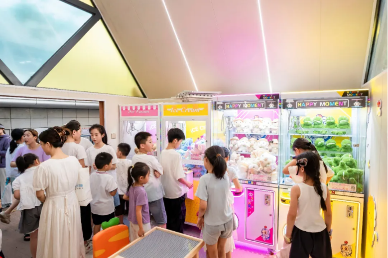 運送氣球游戲結束后,下一站便是森林長廊小屋!里面不僅僅有娃娃機,還放置了大量課外書以及小黑板、積木等,方便小朋友們玩耍!小朋友們用氣球游戲中獲得的游戲幣開始了抓娃娃之旅,當看到娃娃機里琳瑯滿目的可愛玩偶時,他們紛紛“哇”出聲來,興奮極了。
