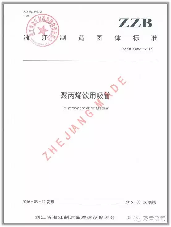 “浙江制造”團(tuán)體標(biāo)準(zhǔn)《聚丙烯飲用吸管》正式發(fā)布實(shí)施