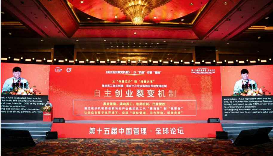 雙童創(chuàng)始人樓仲平作為獲獎企業(yè)代表,在論壇現(xiàn)場作了題為《機制創(chuàng)新與“共同富?!钡碾p童實踐》的專題分享。希望雙童的“自主創(chuàng)業(yè)裂變機制”能助力更多企業(yè)轉(zhuǎn)型升級,為全球管理實踐注入新的活力!接下來,就讓我們一起走入分享現(xiàn)場吧!