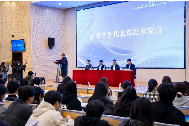 其中,藝術(shù)學(xué)院學(xué)生鄭思彤作為學(xué)生代表發(fā)言。她表示,這份榮譽(yù)不僅是物質(zhì)支持,更是精神激勵!她從雙童專注打磨吸管的故事中,領(lǐng)悟到匠心精神的可貴,而這份感悟?qū)⒅敢谠O(shè)計專業(yè)精益求精,把認(rèn)可化為動力,以所學(xué)服務(wù)社會!