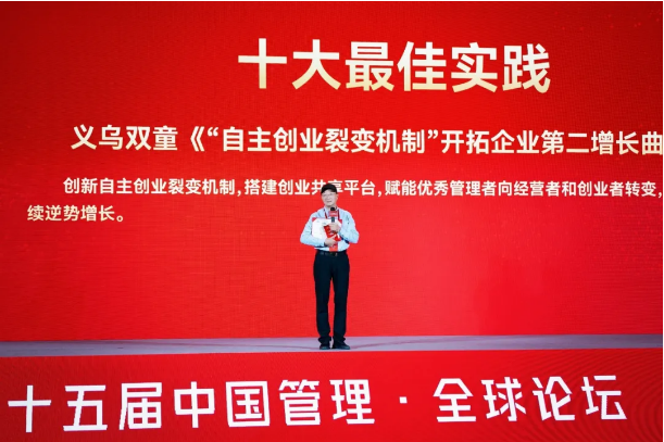 面對(duì)全球“禁塑令”的挑戰(zhàn),樓仲平順勢(shì)將吸管板塊業(yè)務(wù)“切分承包”給員工,讓員工變身為創(chuàng)業(yè)伙伴,自己退居控股股東位置護(hù)航,實(shí)現(xiàn)了從“管理控制”到“賦能共生”的根本性轉(zhuǎn)變。2025年,雙童憑借其開(kāi)創(chuàng)性的“自主創(chuàng)業(yè)裂變機(jī)制”,與華為、海信等巨頭比肩,共同榮膺首屆“中國(guó)企業(yè)管理最佳實(shí)踐榜”十大最佳實(shí)踐,成為唯一上榜的中小企業(yè),這無(wú)疑是對(duì)其管理哲學(xué)的最高認(rèn)可。