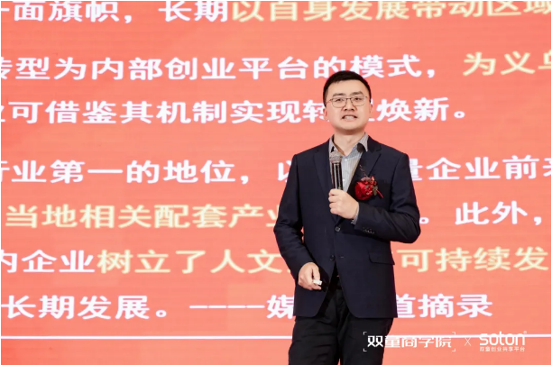 與此同時,雙童正式宣布商學院進行品牌升級,由“雙童商學院”更名為“雙童商學”。這一字之變,意味著:“雙童商學院”從義烏工商職業(yè)技術學院的二級分院升級為一個更開放、更獨立的教育品牌,從提供一套課程體系,升級為構筑一個共生共長的商業(yè)智慧生態(tài)系統(tǒng)。