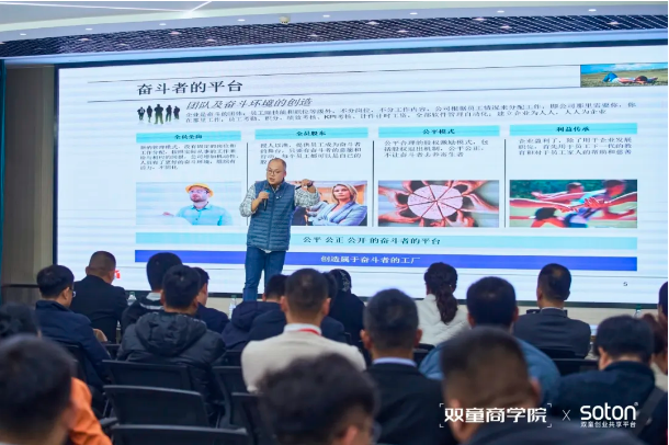 雙童商學院課程研發(fā)總監(jiān)劉議鴻老師則在《雙童商學院系統(tǒng)化產品設計與實踐》分享中,揭示了企業(yè)家學習的本質、實踐價值與持續(xù)進化,強調唯有通過真實戰(zhàn)場的歷練才能產生真正有效的理論。企業(yè)家要學的,不僅是知識,更是高維度智慧。