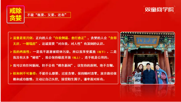 對于創(chuàng)業(yè)者而言,打造IP無需追求一蹴而就,縱向比較的成長心態(tài)更為重要。不必與頭部網(wǎng)紅盲目攀比,5000粉絲就能獲得傳統(tǒng)渠道難以企及的信息與機會;即便自身不擅長,也可培養(yǎng)員工組建團隊,逐步構(gòu)建企業(yè)IP矩陣。樓老師最后以思享薈學員王麗打造個人IP的案例作為結(jié)尾,點明IP打造的核心不是追求短期流量爆發(fā),而是通過長期、真誠的價值傳遞,建立可持續(xù)的社會信任與商業(yè)影響力。