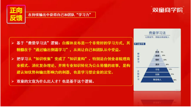 IP打造的過程,也是團隊學習力提升的過程?;谫M曼學習法,持續(xù)的內(nèi)容輸出能倒逼輸入,讓創(chuàng)業(yè)者與團隊在梳理商業(yè)模式、消化專業(yè)知識、轉(zhuǎn)化公眾語言的過程中,實現(xiàn)“知識重構(gòu)”而非單純的“知識收集”。雙童文宣團隊的成長,正是這一邏輯的生動體現(xiàn)。