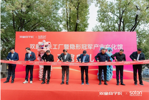 開館儀式現(xiàn)場,氣氛熱烈而莊重?;顒?dòng)伊始,雙童創(chuàng)始人樓仲平與總經(jīng)理李二橋共同為舞獅表演點(diǎn)睛,為現(xiàn)場增添了濃濃的喜慶氛圍。點(diǎn)睛儀式后,激動(dòng)人心的剪彩環(huán)節(jié)如期而至。雙童創(chuàng)始人樓仲平、總經(jīng)理李二橋、副總經(jīng)理李秀前,以及著名華人經(jīng)濟(jì)評(píng)論家莫邦富老師、大信家居董事長龐學(xué)元、巨龍光學(xué)董事長董贛明等行業(yè)良師益友,雙童商學(xué)課程研發(fā)總監(jiān)劉議鴻老師、首席咨詢師劉育良老師共同登臺(tái),手持金剪為開館儀式剪彩。隨著“雙童未來工廠及隱形冠軍產(chǎn)業(yè)館正式開館”的宣告聲響起,現(xiàn)場掌聲雷動(dòng),標(biāo)志著這座凝聚著雙童30余年智慧與心血的“活體教科書”正式向外界開放。剪彩儀式后,雙童創(chuàng)始人樓仲平留下了真摯而深刻的分享。談及雙童未來工廠和隱形冠軍產(chǎn)業(yè)文化館的建成,他用栽樹來做比喻:“20多年前我就考慮到這棵樹的未來,挖掉舊土、引入新壤、搭建廢水處理池,給它充足的水分、土壤與空間,再加上良好的基因,長成參天大樹便是自然而來。”樓仲平介紹道,未來工廠是雙童目前第一重大項(xiàng)目,已完成第一階段目標(biāo),由團(tuán)隊(duì)歷時(shí)一年多自主研發(fā)推進(jìn),通過數(shù)字化深度賦能生產(chǎn)線,實(shí)現(xiàn)了70%的人工節(jié)省。在全球競爭內(nèi)卷的當(dāng)下,雙童用技術(shù)創(chuàng)新給出了“如何頂天立地”的答案。而同步開放的隱形冠軍產(chǎn)業(yè)文化館,更是傾注了團(tuán)隊(duì)的心血:從今年9月開始,團(tuán)隊(duì)四處搜集檔案資料,找回了大量1997年之后的珍貴原件,雖遺憾缺失97年前的部分資料,但這些留存的文件如同大樹的年輪,清晰呈現(xiàn)了雙童從小而專走向精而強(qiáng)的底層邏輯與發(fā)展路徑。