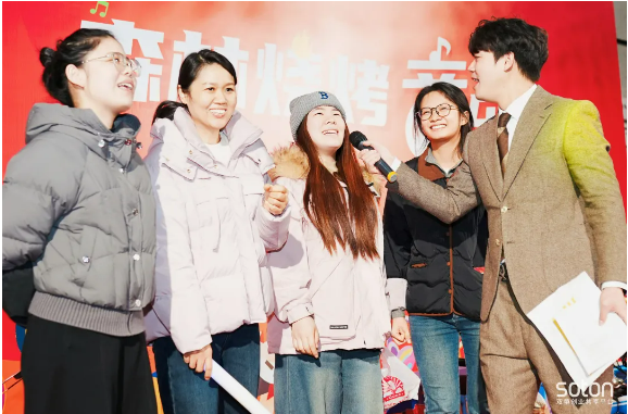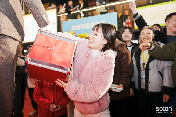 雙童創(chuàng)始人樓仲平也化身“圣誕老人”,親手為大家送上熱騰騰的烤串與代金券,將暖意傳遞至每個人手心?,F(xiàn)場還精心準(zhǔn)備了三十張刮刮樂彩蛋,大家興致勃勃地刮開涂層,歡笑聲此起彼伏,更有人幸運(yùn)中得驚喜大獎,點(diǎn)燃了全場!