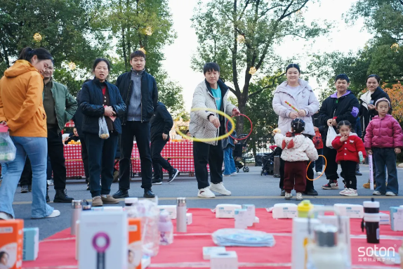 而電商科的同事們精心籌備的套圈游戲區(qū)域人氣爆棚!現(xiàn)場吸引了大量觀眾駐足圍觀,人群中不時爆發(fā)出喝彩聲與歡笑聲,參與游戲的員工與家屬絡(luò)繹不絕,大家一個接一個地抱走禮品,熱情高漲。
