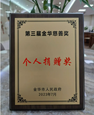“第三屆金華慈善獎(jiǎng)個(gè)人捐贈(zèng)獎(jiǎng)”證書(shū)