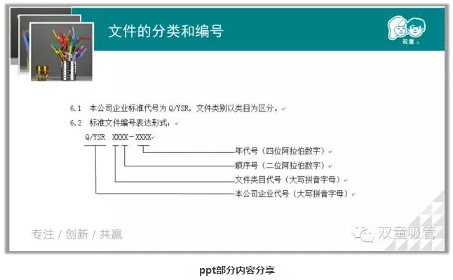 看到這里,有的朋友可能會有疑問:你們是拿什么做評判依據(jù)來進(jìn)行評獎的呢?“雙童”發(fā)展二十多年以來,積累了大量的制度、規(guī)程和各種管理文件,它們是企業(yè)管理體系的重要組成部分,是形成我們企業(yè)文化建設(shè)的基礎(chǔ)平臺?;诠緲?biāo)準(zhǔn)化工作和文化建設(shè)的需要,我們也專門制訂了《公司文件管理操作規(guī)范》,以指導(dǎo)員工在工作中對文件的編輯和管理。
