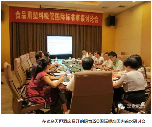 2012年7月24日,由國(guó)家塑料制品標(biāo)準(zhǔn)化技術(shù)委員會(huì)和“雙童”公司召集國(guó)內(nèi)吸管行業(yè)的十多家生產(chǎn)企業(yè),在義烏市天恒酒店召開ISO國(guó)際標(biāo)準(zhǔn)國(guó)內(nèi)分組研討會(huì)。會(huì)上集中討論了由“雙童”提交的吸管ISO國(guó)際標(biāo)準(zhǔn)草案初稿,決定采用屬地原則的有利條件,在中國(guó)《聚丙烯飲用吸管》國(guó)家標(biāo)準(zhǔn)的基礎(chǔ)上進(jìn)行ISO國(guó)際標(biāo)準(zhǔn)的條文延伸和編輯,以最大程度上有利于中國(guó)吸管行業(yè)的健康發(fā)展。