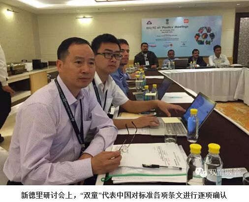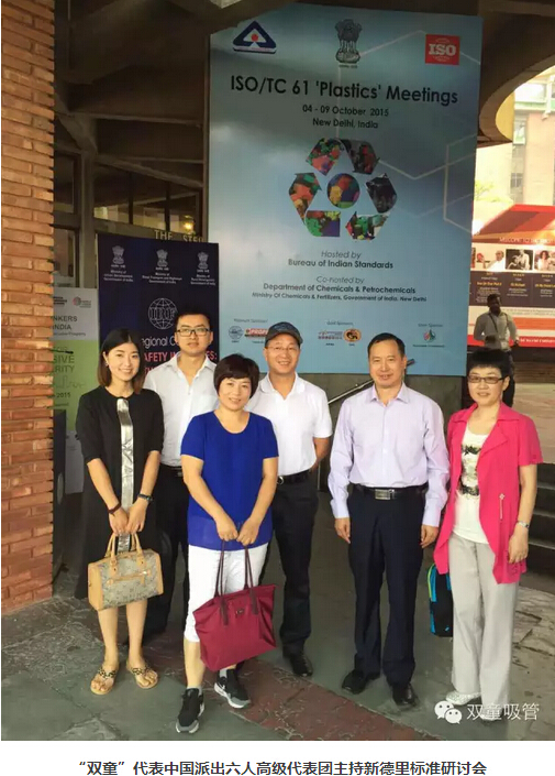 2015年10月6日,ISO TC61國(guó)際標(biāo)準(zhǔn)化組織年會(huì)在印度新德里召開,作為最后一次國(guó)際標(biāo)準(zhǔn)起草工作的定稿工作,“雙童”代表中國(guó)派出了強(qiáng)大的六人技術(shù)代表團(tuán)。經(jīng)過幾天緊張的討論,“雙童”會(huì)同各參與主席國(guó)對(duì)《聚丙烯飲用吸管規(guī)范》送審稿的各項(xiàng)條文進(jìn)行最終的程序性確認(rèn),在參與各國(guó)代表一致同意下形成了《聚丙烯飲用吸管規(guī)范》ISO國(guó)際標(biāo)準(zhǔn)報(bào)批稿,提交給瑞士日內(nèi)瓦的ISO國(guó)際標(biāo)準(zhǔn)化組織最終審定。