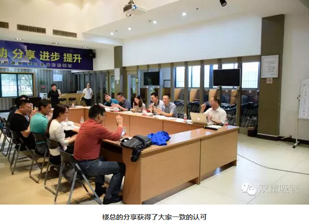 參觀后,大家終于有機(jī)會坐下來分享交流。首先,當(dāng)家人樓總和大家分享了《隱形冠軍背后的“匠人”思維》課程的部分內(nèi)容,講到了“雙童”倡導(dǎo)的“匠人之心”——“初心”、“恒心”、“平常心”。只有初心存正,企業(yè)的目標(biāo)才會自然而至。一生做好一件事就很了不起了。”