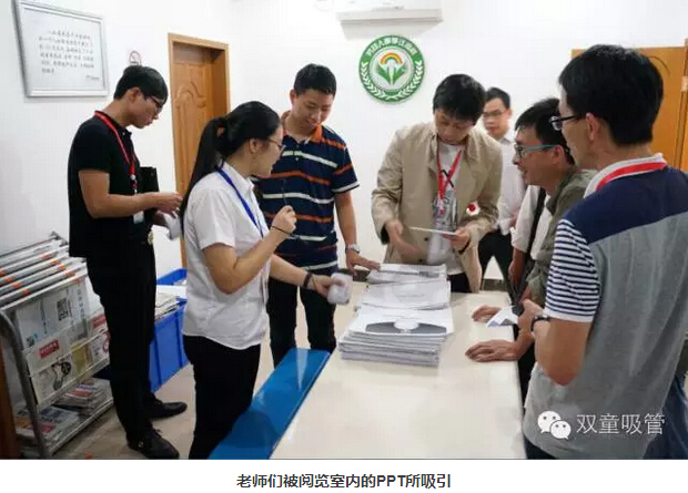 來到九樓,吸管妞領(lǐng)著大家來到了閱覽室,老師們立即被桌子上厚厚一大疊的PPT裝訂材料所吸引。原來,這就是我們“雙童”每期學(xué)習(xí)會(huì)的學(xué)習(xí)PPT材料呢!不論是哪個(gè)講師的PPT,都是一樣的外觀標(biāo)準(zhǔn),這也是我們精細(xì)化管理的體現(xiàn)哦!