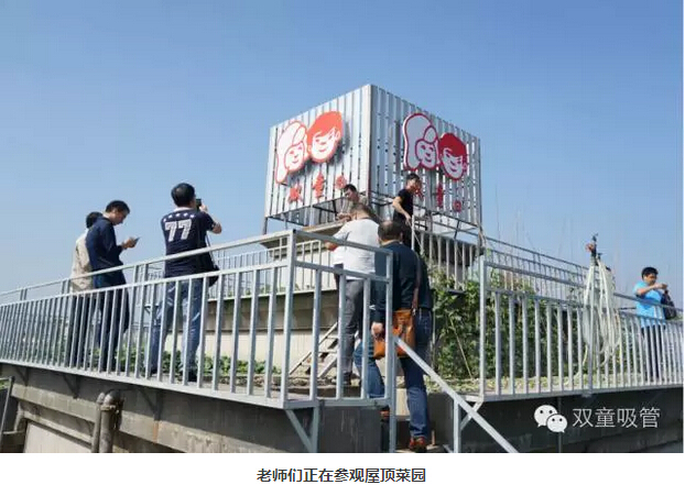 來到屋頂菜園,吸管妞向大伙介紹了“空中菜園”的總面積有近800平方米,每個(gè)種植區(qū)的土層均有1米2深,就連我們腳下踩的地方都有三十公分的土層呢!看到這里大家紛紛開始敬佩樓總對(duì)工廠的設(shè)計(jì)。
