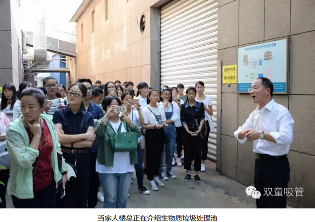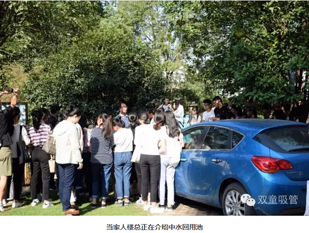 一進門,學(xué)生們就提出要好好逛逛我們的花園式工廠。這不,當(dāng)家人樓總立即帶大家看起了我們的節(jié)能降耗設(shè)施。當(dāng)家人向?qū)W生們詳盡地講述了我們的中水回用系統(tǒng)、雨水收集系統(tǒng)、垃圾分類系統(tǒng)等各個設(shè)施的運行原理,同學(xué)們對這樣生態(tài)環(huán)保的做法都贊不絕口呢!
