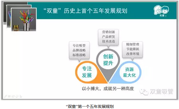 首先,當家人樓總對“雙童”過去的五年發(fā)展規(guī)劃,及“雙童”發(fā)展前后十年進行了對比與總結(jié)。2005年,“雙童”提出了第一個五年發(fā)展規(guī)劃,其中提到了三個關(guān)鍵詞“專注發(fā)展”、“創(chuàng)新提升”、“資源最大化”,在這期間,“雙童”始終堅持以小博大的理念,沒有貪大求全,急功近利,專注做好一根吸管。