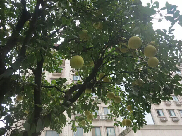 已經(jīng)轉(zhuǎn)黃的大柚子高高低低的掛滿了枝頭,和青綠的葉子應(yīng)和著,煞是好看呢!從樹下往上看,像不像星星掛滿天的趕腳?吸管妞還發(fā)現(xiàn),有幾個柚子長得非常的低,真的可以用“唾手可得”來形容,可是……竟然沒有吃貨來摘?這是怎么回事呢?
