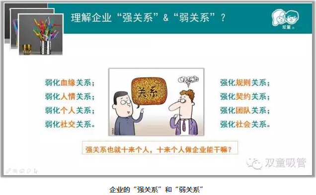 最后,當(dāng)家人和大家分享了“匠人思維”背后的商業(yè)本質(zhì)。首先是“關(guān)系”的本質(zhì),做企業(yè)應(yīng)該弱化個(gè)人關(guān)系,強(qiáng)化企業(yè)關(guān)系!畢竟一個(gè)人的能力是有限的,他能發(fā)展的強(qiáng)關(guān)系范圍也就只有十來個(gè)人,在企業(yè)經(jīng)營中,十多個(gè)人的作用并不大!真正把企業(yè)做好了,一切關(guān)系才會好!