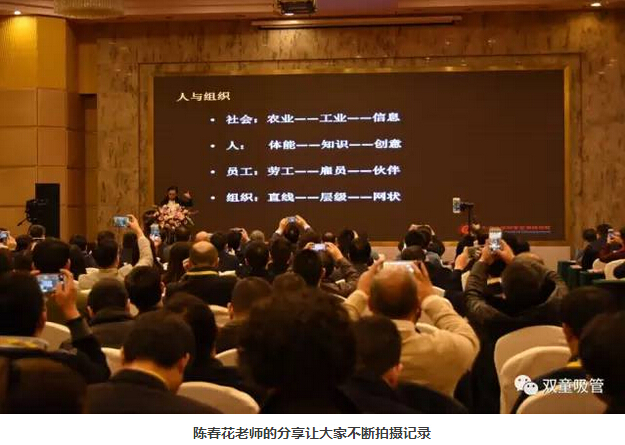 接下來,趙曙明教授從人力資源的角度做了主題演講《共享經(jīng)濟下企業(yè)人力資源管理》。說起趙曙明老師,他其實是陳春花教授的老師,也是現(xiàn)代管理學之父彼得·德魯克的學生,是中國德魯克管理理論的布道者!趙老師講到共享經(jīng)濟就是這種趨勢發(fā)展下的產(chǎn)物之一,并提出了共享經(jīng)濟在組織所面臨的三大挑戰(zhàn)和三大對策。企業(yè)做出改變迫在眉睫,管理不是“管理”人,而是“領(lǐng)導”人;管理的目標是充分發(fā)揮和利用每個人的優(yōu)勢和知識!