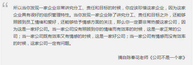 “組織不會(huì)照顧個(gè)人,也就意味著在組織中我們是用目標(biāo)、責(zé)任、權(quán)力來聯(lián)結(jié),而不是用情感來聯(lián)結(jié)的。”