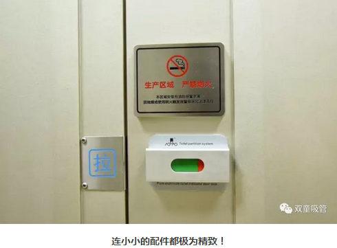 除此之外,衛(wèi)生間內(nèi)還有許多提示引導(dǎo)的標(biāo)示牌,每個(gè)配件都極為精致!每扇門(mén)上都會(huì)有“生產(chǎn)區(qū)域,嚴(yán)禁吸煙”的標(biāo)識(shí),每個(gè)蹲位后面都有“便后請(qǐng)沖水、素養(yǎng)高低往往體現(xiàn)在關(guān)上門(mén)自己獨(dú)處之時(shí)”的溫馨提示,引導(dǎo)員工提升素質(zhì)。偷偷爆個(gè)料,所有標(biāo)識(shí)牌都是由當(dāng)家人樓總自己設(shè)計(jì)的呢!