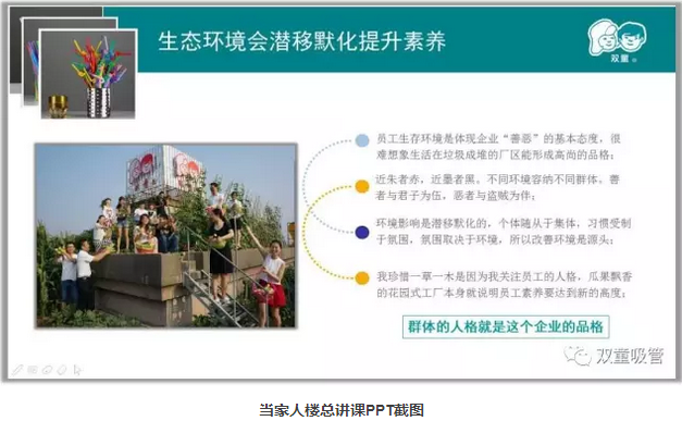 透過(guò)“廁所文化”反映出來(lái)的,其實(shí)是一個(gè)企業(yè)提升員工素質(zhì)、追求極致品質(zhì)的核心!唯有先給員工提供優(yōu)質(zhì)硬件,通過(guò)環(huán)境潛移默化地影響員工的意識(shí)形態(tài),讓員工也從“三星級(jí)”向“五星級(jí)”跨越,這樣才能生產(chǎn)出優(yōu)質(zhì)的產(chǎn)品!看到這里,各位老板們應(yīng)該明白為何“雙童”要讓員工們使用五星級(jí)廁所了吧!