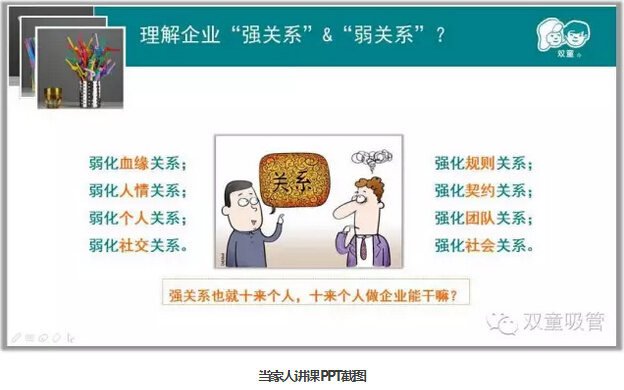 接著,樓總詳細(xì)介紹了以“匠人”思維來(lái)理解的四大本質(zhì)。首先是“關(guān)系”的本質(zhì),做企業(yè)應(yīng)該弱化個(gè)人關(guān)系,強(qiáng)化企業(yè)關(guān)系!畢竟一個(gè)人的能力是有限的,他能發(fā)展的強(qiáng)關(guān)系范圍也就只有十來(lái)個(gè)人,在企業(yè)經(jīng)營(yíng)中,十多個(gè)人的作用并不大!真正把企業(yè)做好了,一切關(guān)系才會(huì)好!其次就是“創(chuàng)新”、“競(jìng)爭(zhēng)”和“規(guī)模”的本質(zhì),創(chuàng)新就是一點(diǎn)點(diǎn)改變,創(chuàng)新需要極大的信仰追求和耐心,需要以五年、十年作為一個(gè)單位堅(jiān)持推進(jìn)!而企業(yè)競(jìng)爭(zhēng)的本質(zhì)就是產(chǎn)品和服務(wù)差異化,“有別于他人”,盡量建立無(wú)人能夠仿效的商業(yè)思維和企業(yè)文化!