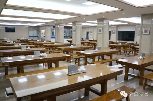 今年十月份,“雙童”的五星級(jí)員工餐廳全面改造完成。餐廳內(nèi)的設(shè)施都配備了最好的硬件,就拿桌子來(lái)說(shuō),員工餐廳的每一張桌子重達(dá)四五百斤,是木中之王的柚木定制而成,每一張就要15000元。