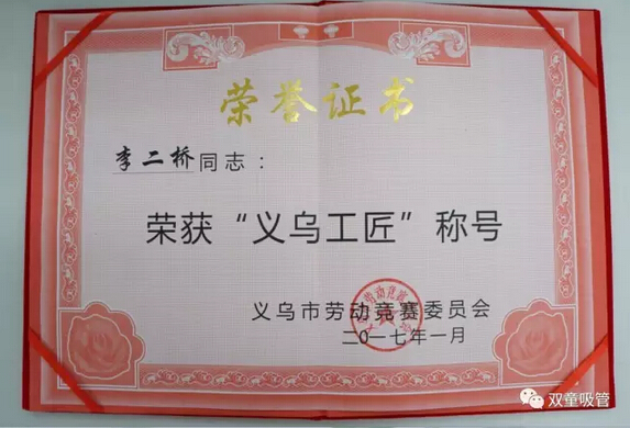 下面妞就來介紹下二當(dāng)家李總的工匠事跡吧!二當(dāng)家李總從基層做起,一步一個腳印,十六年來始終在吸管行業(yè)中深耕細(xì)作,專注發(fā)展,不浮躁,不冒進(jìn),謙虛好學(xué),在工作過程中取得了非凡的成績,曾獲得“優(yōu)秀建設(shè)者”、“義烏創(chuàng)業(yè)新銳”等榮譽(yù)稱號,并組建了金華市李二橋塑料制品成型制作工(成型工)技能大師工作室,成為金華市首批榮獲金華市技能大師工作室之一!