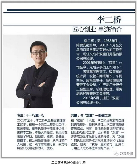 在2017年開年之際,“雙童”就榮獲這兩項大獎,這也鼓勵著“雙童”在新的一年“聞雞起舞”,堅守初心,做好實業(yè),用“匠心”鑄造好產(chǎn)品,將一根吸管做到極致!2017,我們一起擼起袖子加油干!
