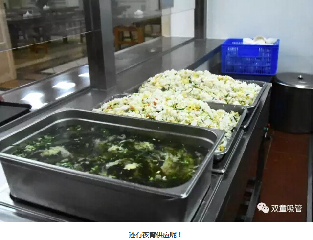 別急別急!除了一日三餐之外,我們還提供夜宵呢!蛋炒飯、紫菜雞蛋湯、面條……這么晚了還有營養(yǎng)的夜宵供應(yīng),員工們進了“雙童”可得胖三斤呀!