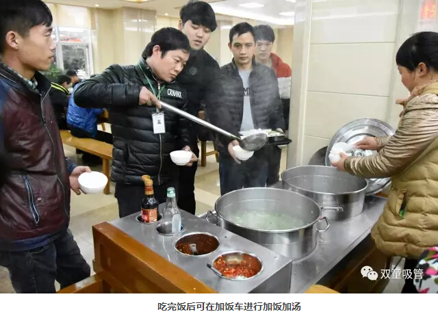 中餐和晚餐就更加豐盛啦,都是三菜一湯的標準。一葷兩素營養(yǎng)搭配,每天都不一樣哦!最重要的是員工們就餐不需要花費一分錢,統(tǒng)!統(tǒng)!免!費!“雙童”的就餐實行刷卡取菜制度,在每月月初財務(wù)會將餐費充入每個員工的飯卡中,員工們刷卡后方可就餐。我們配置給員工的伙食成本每月不低于480元!
