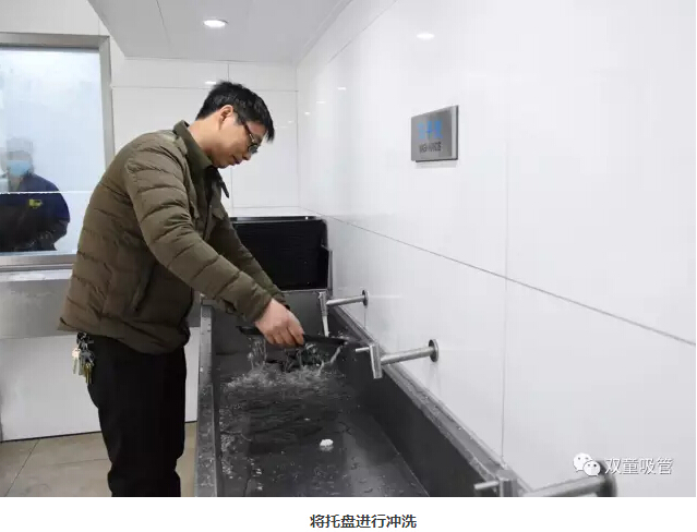 5、將托盤進行沖洗。